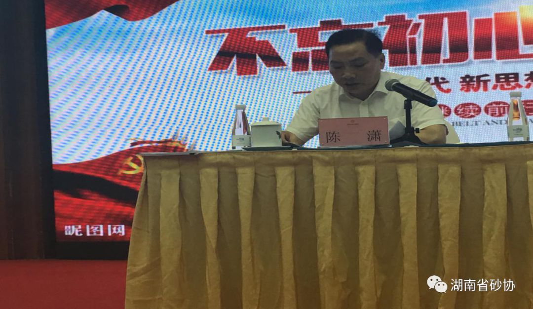 为纪念建党98周年和新中国成立70周年,扎实推进“不忘初心、牢记使命”主题教育,激励广大党员不忘初心、牢记使命,坚定理念信念,走好新的长征路,7月3日下午,湖南省工商联以学习教育专题党课的形式,组织全省行业协会、商会及工商联全体党员在神农大酒店集中学习,来自全省行业协会、商会各负责人,工商联全体党员共计100余人参加此次会议,湖南省砂石协会党支部书记谭建农参加此次会议。
