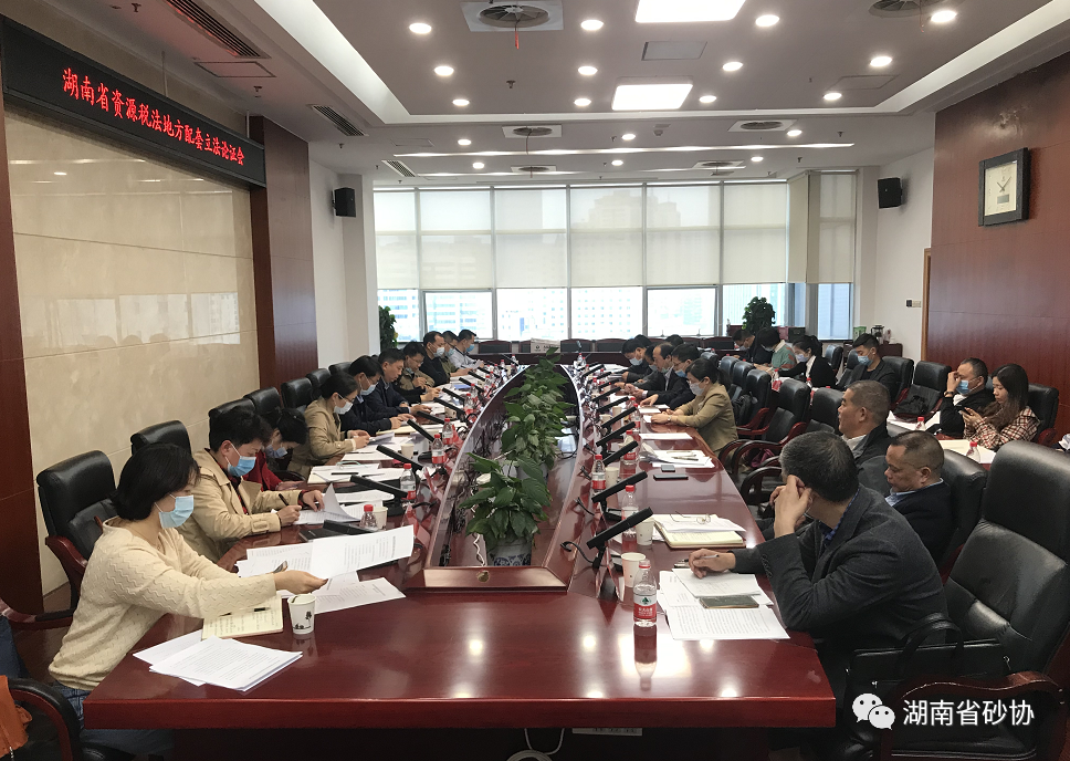 为科学、合理确定湖南省资源税具体适用税率等税法授权事项。2020年4月10日 ,省财政厅、省税务局召开“资源税地方配套立法论证会”。湖南省砂石协会会长李建科、书记谭建农应邀参加此次会议。参会单位:省财政厅(王作军、胡奇志)省人大法制委、省司法厅、省税务总局(陈慧玲、郭建华、黄河)、省自然资源厅(何荣)、省应急厅、省水利厅、湖南省矿业协会、湖南省砂石协会、湖南省水泥协会,专家代表:曹越、王霞、贺飞跃教授,企业代表:黄金洞矿业、湘衡盐化、旺华萤石、南方水泥、宝山铜矿、衡阳化工、狮子山锑矿、湘资砂石。