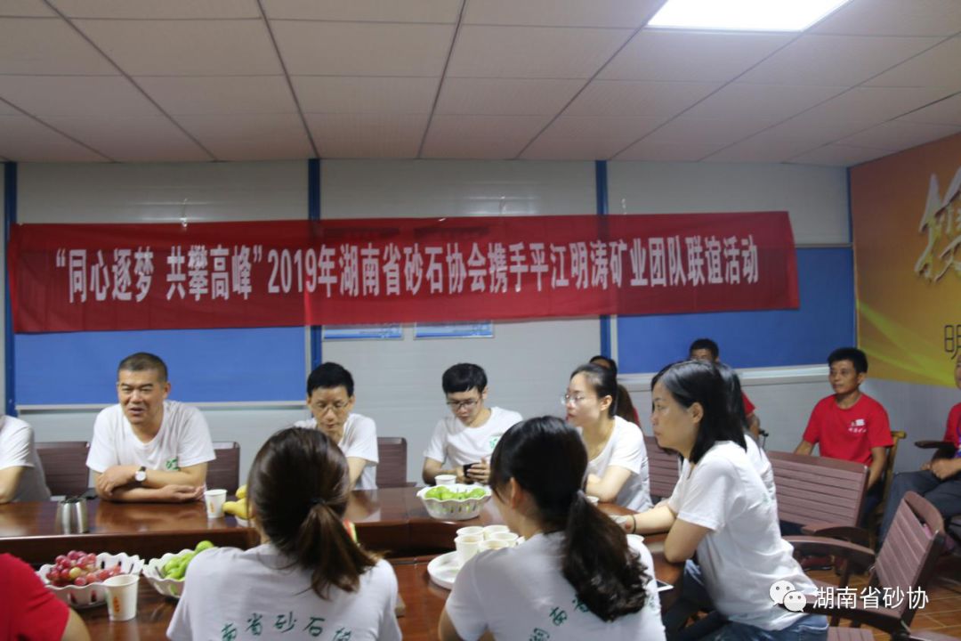 于永忠董事长表示:首先对湖南省砂石协会一行的到来表示欢迎,并介绍了明涛矿业近年来在产业布局、应对危机等方面所取得的成就,并表示明涛矿业作为湖南省砂石协会副会长单位将不遗余力大力支持并配合协会的各项工作。座谈会上,与会人员就产业发展、企业改革等方面进行了广泛的沟通与交流。
