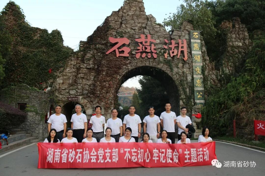 湖南省砂石协会党支部为深化“不忘初心 牢记使命”主题教育,进一步发挥行业协会党组织的政治引领作用,切实加强行业党组织建设,汇聚党员正能量,提升基层党组织战斗力和协会团队的向心力,2019年10月21日,会长李建科、党支部书记谭建农率领协会全体党员及员工在有着“天然氧吧”、“世外桃源”之称的石燕湖举办“不忘初心 牢记使命”主题教育活动,同时,联系工作实际组织开展了“凝心聚力 绿色发展——2019年湖南省砂石协会团队拓展训练营”活动。协会专家委员会执行主任宋笑、常务副秘书长李欣桐等负责同志参加了此次活动。