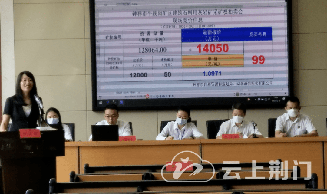 9月18日,钟祥市牛践岗矿区建筑石料用灰岩矿采矿权以1.405亿元的成交价顺利拍卖成交。据悉,此次拍卖是钟祥市首宗大型建筑石料用灰岩矿采矿权拍卖,也是 湖北省第一例以拍卖形式出让的采矿权。