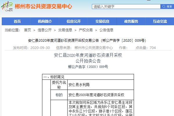 242轮加价、溢价644%!郴州产权交易创新高 发布日期:2020-10-21 02:21:41 点击量:1 标签:行业新闻 2020年10月13日下午,安仁县永乐江河道部分段区采砂权公开拍卖在郴州市公共资源交易中心举行,本次拍卖标的起拍价209万元,经过242轮激烈角逐,最终以1555万元成交,较起始价高出1346万元,溢价高达644%,创近年郴州市公共资源交易项目新高。据悉,此次郴州市水利局批复安仁县2020年采砂控制计划量共为9.5万吨,单价高达164元/吨 。此次控制计划指标按每个砂石矿资源储量报告基数实行比例分配,规划可采区域为永乐江安仁县主河段及其主要支流,共规划5个可采区段。来源:曹桀搬砖文 字:雷闪闪 图 片:欧阳琼 责任编辑:李欣桐声明:对转载、观点、图频保持中立,目的仅在于传递信息,版权归原作者,如遇侵权,我们将及时删除,谢谢。