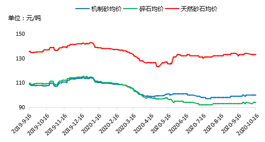具体来看,本周机制砂、碎石、天然砂价格变动情况如下: