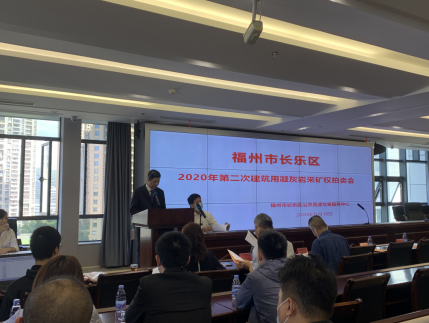 2020年11月18日上午10点00分,福建省福州市长乐区2020年第二次建筑用凝灰岩(机制砂用)采矿权公开出让拍卖会在长乐区公共资源交易服务中心成功开幕,于10点46分圆满收官。