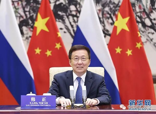 11月17日,中共中央政治局常委、国务院副总理、中俄投资合作委员会中方主席韩正与俄罗斯第一副总理、委员会俄方主席别洛乌索夫通过视频方式共同主持中俄投资合作委员会第七次会议。
