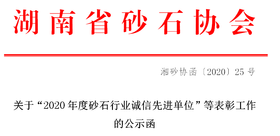 在创新发展和产业调整过程中,行业涌现出一批锐意进取、奋力开拓、敢于担当、诚信为本的先进模范人物和优秀企业,对引领行业发展起到了重要示范作用。为此,协会在行业内开展了“2020年度砂石行业诚信先进单位、表彰工作。经协会评审,将结果公示如下(公示期间如有疑问,请与秘书处联系):