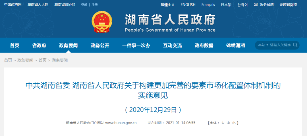 中央湖南省委、湖南省人民政府关于构建更加完善的要素市场化配置体制机制的实施意见