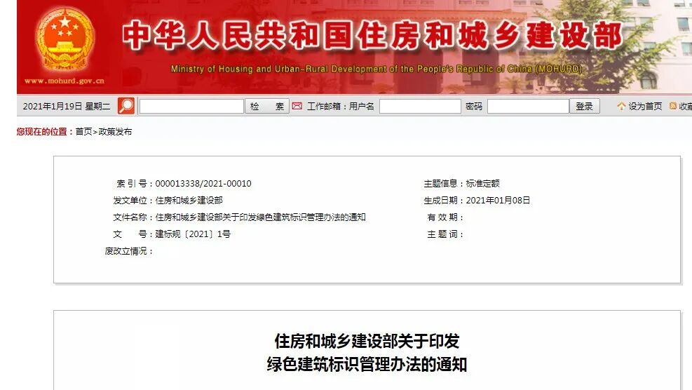 住建部印发《绿色建筑标识管理办法》2021年6月1日起施行