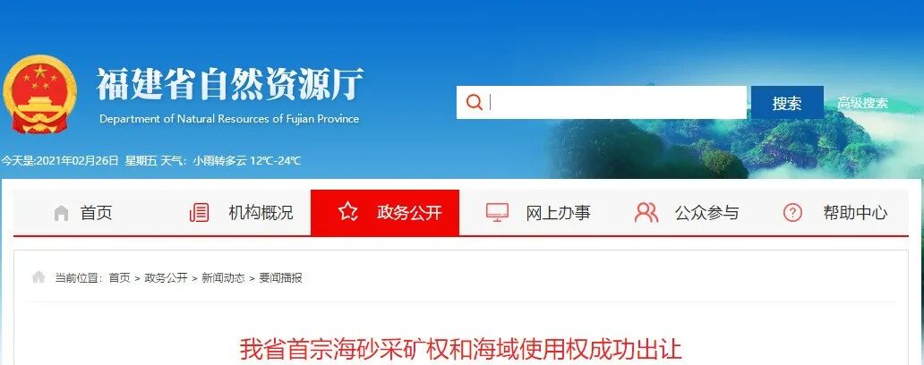 成交价款6.19亿元,溢价率达737.14%,福建海砂采矿权和海域使用权“两权合一”成功出让