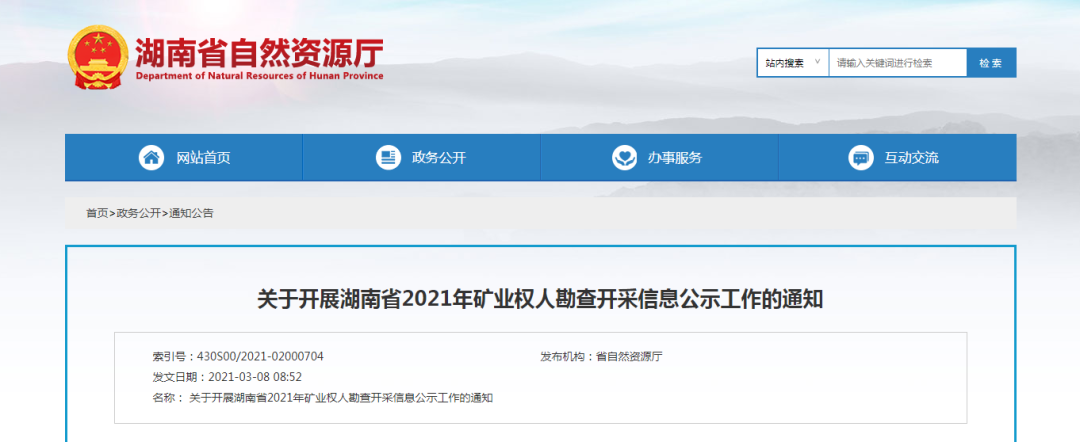 省自然资源厅关于开展湖南省2021年矿业权人勘查开采信息公示工作的通知