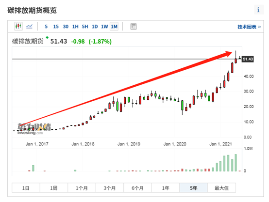 在过去四年里,欧盟碳排放期货价格飙升了10倍。