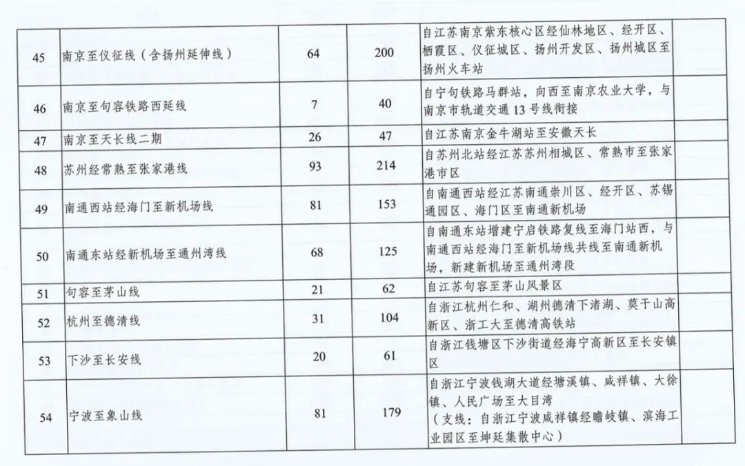 ー一城际铁路营业里程约1500公里,长三角地区相邻大城市间及上海、南京、杭州、合肥、宁波与周边城市形成1-1.5小时城际交通圈。