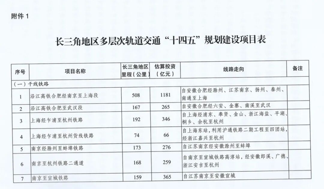 到2025年,基本建成轨道上的长三角,形成干线铁路、城际铁路、市域(郊)铁路、城市轨道交通多层次、优衔接、高品质的轨道交通系统,长三角地区成为多层次轨道交通深度融合发展示范引领区,有效支撑基础设施互联互通和区域一体化发展。