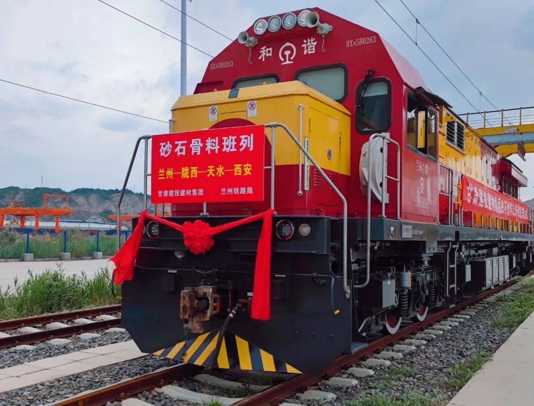 甘肃首列砂石骨料“公转铁”集装箱班列正式开行
