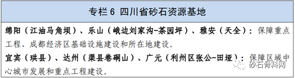 加强机制砂石资源基地建设。立足成渝地区双城经济圈城市发展、重大交通水利等基础设施建设和民生工程保障需要,支持绵阳、乐山、宜宾、雅安、达州、广元等资源条件丰富、交通运输便利、有环境容量的地区布局一批千万吨级大型机制砂生产基地,确保砂石资源长期供需平衡,价格稳定。
