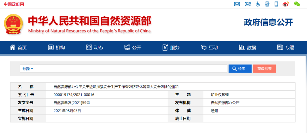 自然资源部办公厅关于近期加强安全生产工作有效防范化解重大安全风险的通知各省、自治区、直辖市自然资源主管部门,新疆生产建设兵团自然资源局,中国地质调查局及部其他直属单位,各派出机构: 近期,一些地方自然灾害和安全生产事故频发,造成重大人员伤亡和财产损失,教训十分深刻。中央领导同志多次作出重要指示批示,国务院及相关部门连续召开会议对加强城市安全工作进行部署,要求强化责任落实,加强防灾减灾救灾,最大程度减轻安全生产、自然灾害风险和损失。近日,国务院安全生产委员会 国家防汛抗旱总指挥部印发《国务院安全生产委员会 国家防汛抗旱总指挥部关于切实加强城市安全工作的通知》(安委明电〔2021〕2号),对加强城市安全工作进行了部署。为切实做好自然资源领域安全生产工作,现就近期加强安全生产工作有效防范化解重大安全风险通知如下: 各单位要认真学习领会、深入贯彻落实习近平总书记重要指示精神,深刻吸取近期一些地方发生的重大事件事故教训,强化政治敏锐性和政治责任感,统筹发展和安全,始终坚持人民至上、生命至上、安全第一,始终绷紧安全生产这根弦,决不能身子进入了新发展阶段,但思想观念还停留在过去。要层层压实责任,认真学习《生命重于泰山—学习习近平总书记关于安全生产重要论述》电视专题片,真正做到“始终把保障人民群众生命财产安全放在第一位”,坚持以防为主,想全想细想万一、抓紧抓实抓到位,宁可十防九空、不可失防万一。以保安全、护稳定的实际行动和工作成效,践行“四个意识”,做到“两个维护”。贯彻落实“党政同责、一岗双责、齐抓共管、失职追责”的要求,深入分析研判自然资源领域重大安全生产风险,切实抓好安全生产和防范化解重大安全风险工作。 地方各级自然资源主管部门要立足自身职责,结合国务院安全生产考核巡查、明察暗访发现的问题和事故暴露出的风险隐患,举一反三靶向施策,严防隐患演变成事故;要积极配合有关部门开展安全防范工作,深入重点区域开展安全生产督导检查。在空间规划、用地审批、海洋管理等方面切实贯彻安全发展理念,认真查找工作中的短板和隐患;加强违法违规建设用地行为查处,严厉打击无证勘查开采、越界开采等行为,严防自然资源违法违规行为引发的安全事故;加强地勘、测绘行业安全隐患排查整治,督促指导地勘、测绘单位切实担起安全生产主体责任,将各项安全管理制度落到实处,扎实细致做好野外作业安全风险防范工作,严防各类事故发生;积极配合有关部门开展煤矿、非煤矿山、尾矿库等重点行业领域安全检查,督促企业全面排查安全风险、及时治理安全隐患;配合有关部门开展全国深化打击整治枪爆违法犯罪专项行动和危化品安全风险隐患排查治理工作。 部有关单位要加强自然资源调查监测、生态修复治理、基础测绘等财政出资项目安全管理,落实项目组织单位的监管责任,压实项目承担单位的主体责任。中国地质调查局及部其他直属单位、各派出机构要全面排查整治本单位安全隐患,主要领导要亲自安排部署,加强组织领导,制定防范措施,克服麻痹思想和厌战情绪,从根本上消除安全隐患。要把自查自纠贯穿始终,重点在办公地点、消防安全、危爆危化品使用、防汛等方面,加强有效安全防范;强化测绘、地勘、海洋外业安全管理,开展油气钻井、海上作业、大型设备和野外行车等方面专项检查,防止发生野外、空中、井下、海上安全事故,并及时掌握和报告安全生产重要事件;加强文博单位等开放场所、人员密集等场所的安全防范和组织引导,完善疏导管控和应急保障,坚决遏制发生火灾、踩踏、水灾等安全事故。 地方各级自然资源主管部门要强化部门联动,切实抓好海洋灾害的监测、风险评估和隐患治理,及时发布预警预报和风险提示;参与重大海洋灾害应急处置和海上应急救援;发生城市内涝等紧急情况,要发挥专业技术力量优势,积极参与防洪抢险;配合有关部门进一步完善和落实安全生产应急预案,进一步强化值班值守和应急联动,确保发生事故险情时能与有关部门协同联动,及时采取有效的应急救援措施,防止事故扩大和次生灾害的发生,减少人员伤亡和财产损失。 中国地质调查局及部其他直属单位、各派出机构要加强对用火用电用气、消防、交通、防汛等安全知识宣传,加强全员安全培训,进一步增强干部职工安全意识,提高风险管控和避险减灾技能,有效应对险情,避免人员伤亡。有效强化应急准备,落实救援队伍、装备、物资等应急资源,完善应急预案,强化应急演练。要严格执行领导干部带班、关键岗位24小时值班制度,值班人员必须坚守岗位,尽职尽责、严禁擅离职守,一旦发生突发事故灾害,领导干部要闻风而动、听令而行,身先士卒、靠前指挥,立即处置并及时报告。