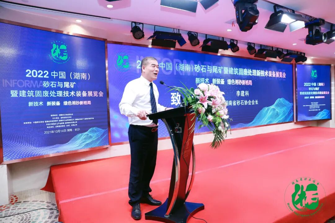 10月14日下午,“2022中国(湖南)砂石与尾矿暨建筑固废处理新技术装备展览会”信息发布会在长沙隆重举行。现场宣布:由湖南省砂石协会联袂会展行业龙头企业企阳会展有限公司共同举办的“2022中国(湖南)砂石与尾矿暨建筑固废处理新技术装备展览会”将于2022年4月13-15日在长沙国际会展中心举办。长沙市会展工作管理办公室二级巡视员陈树中,湖南省自然资源厅矿保处处长陈强春,湖南省工商业联合会商会处处长张帆,湖南省砂石协会会长李建科出席发布会并讲话。