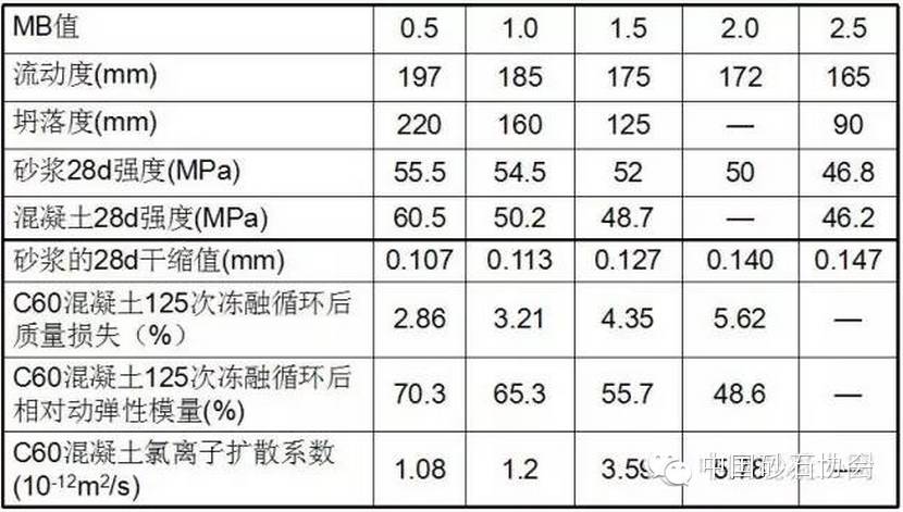 0.5≤ MB ≤1.0时,人工砂中会含有少量的粘土类物质,对混凝土性能影响不明显,还能改善混凝土的和易性,可用在C30~C55混凝土中。
