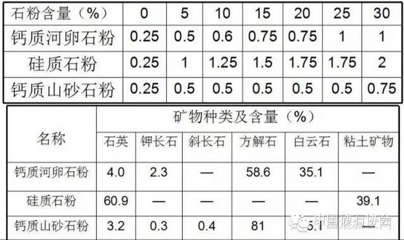 对于中低强度等级混凝土,硅质石粉可以控制在7%以下;钙质石粉可以取10-15%,以控制水泥、粉煤灰、矿渣粉用量。