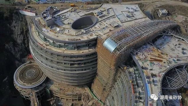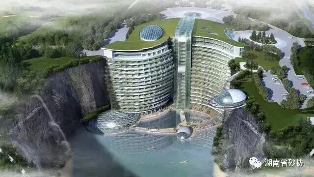 深坑酒店效果图 世茂深坑酒店位于上海市松江区佘山国家旅游度假区的天马山深坑。天马山深坑原为松江区佘山镇一40米高的山丘。因山体为石矿,自解放前即开始炸山采石,20世纪50年代末,整个山丘已荡然无存,到20世纪70年代,挖出88米深的大坑。 该深坑围岩由安山岩组成,收集雨水后形成深潭。深坑近似圆形,上宽下窄,面积约36800平方米(5个足球场大小),最深处深度约为88米。其周长约1公里,东西向长度为280米左右,南北向宽度为220米左右,崖壁陡峭,斜坡角度约80度。 采石场废弃矿坑原貌 参与过地标迪拜帆船酒店设计的建筑师 Martin Jochman 是这个项目的设计总监。 “有人会认为我是一个‘疯子’,但有的时候,我们确实需要一点疯狂,才能让所有人都认为‘不可能’的事情变得可能。” 深坑酒店的总建筑高度约为 74 米,规划为地平面以上2层、地平面以下16层。露出“坑表”的地上三层建筑内含酒店大堂、会议中心和餐饮娱乐中心。“坑内”则是酒店的主体建筑,主楼使用玻璃、金属板材设计的曲面立面,还特别设计了悬空玻璃观景平台,可以俯瞰整个深坑全貌。这里还设有户外休闲中心,人们可以在这里参与攀岩、蹦极和水上运动。最引人注意的是水下情景客房,客人透过房间内的玻璃窗就能看到水下鱼群游弋、各类海底岩石及珊瑚,为客人营造身处海洋之中的感觉。而该酒店另一大景观则是大型景观瀑布,从悬崖上垂挂而下,和酒店中央的玻璃瀑布幕墙构成了一个壮观呼应的景观。 世茂深坑酒店的整个工程,在消防、抗震和防水等各方面都无先例可借鉴。常规的混凝土是从地面向上输送,但是向下输送的难点在于重力作用,混凝土到坑底时像子弹一样往外喷射,补料和砂浆因为离心作用就达不到混凝土的质量。 对混凝土输送采取‘一溜到底’的输送技术,当中添加了缓冲装置,通过降速来保证混凝土从坑顶到坑底仍保持原有质量,同时也保证输送效率。 抗震方面,建设时除了要考虑到结构本身,还要考虑到崖壁、岩石之间的整体。仅仅是抗震论证,就花了若干年的时间。 组织了全国专家,对项目的消防问题进行特别论证,包括人员疏散、防火分区等设置都得到了消防审查意见。深坑三面环水,如遭遇大暴雨等极端天气,坑里就会有积水问题,为此项目特别配置专门的泄洪泵房,装有6台大功率排水泵。 设计师在这个废弃的矿坑中建造了人工景观湖,为了维持安全水位,基于上海历史水文资料的研究,设计师设置了抽水泵,以确保每天湖水的水位变化不超过 500 毫米的安全区间。 337 间客房和一间总统套房分布在主体建筑内。其中湖面以上的 14 层为标准客房,每一间都设有观景露台,和走廊连接,形成“空中花园”。入住者可以在这里看到西北侧坑壁落差近百米的瀑布。 最低的两层是套房和总统套房,位于观景湖水平面以下,拥有最好的水下景观视线,设计师利用水族馆设计技术,包括人造岩石和珊瑚礁设计、水族馆环境设计等,试图营造置身海洋中的新奇感。 这个“挂在”坑壁上的主体建筑设计,克服了一系列世界级建筑技术难题,项目已完成专利38项,已授权25项。 深坑酒店的建设被誉为世界建筑的奇迹,将成为上海乃至中国的一张璀璨新名片,世界瞩目的新焦点。 也是我国环保发展的新标志,一种环保与艺术的结合。