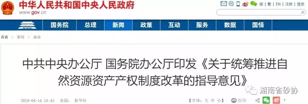 4月14日中共中央办公厅、国务院办公厅印发了《关于统筹推进自然资源资产产权制度改革的指导意见》,并发出通知,要求各地区各部门结合实际认真贯彻落实。